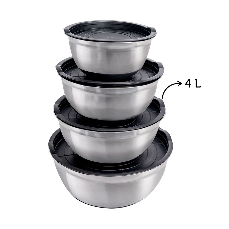 Bowl de Acero Inoxidable con base de silicona y tapa negro 4.0 L