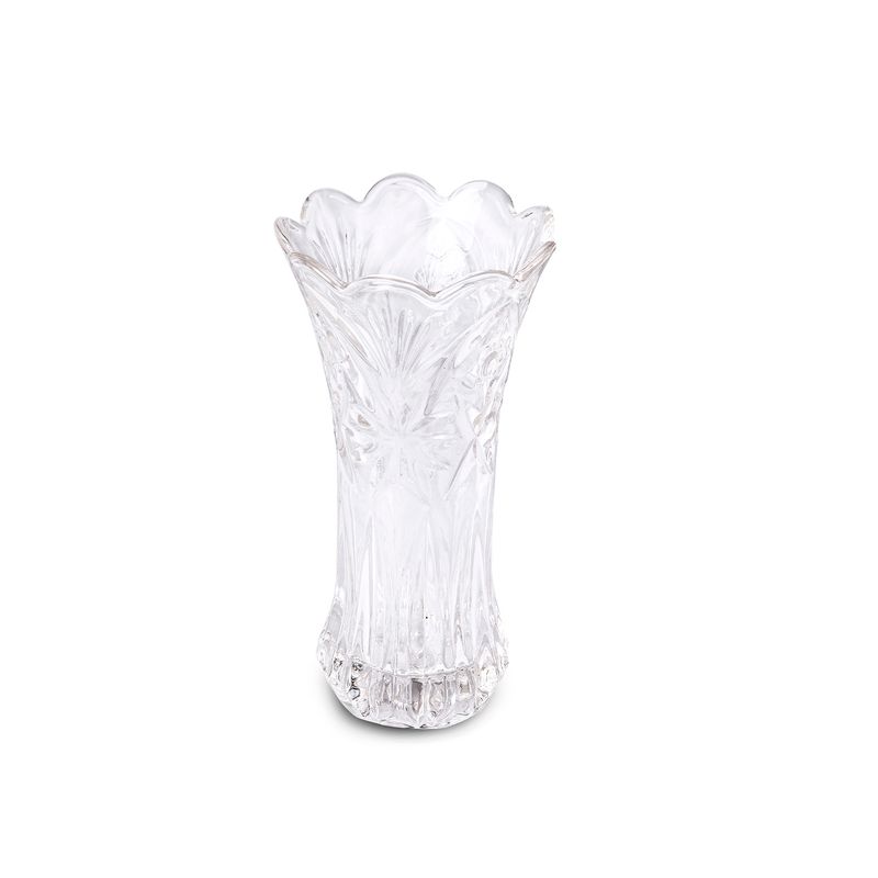 Este florero modelo labrado de vidrio transparente es el complemento perfecto para darle un toque de elegancia y estilo a cualquier espacio de tu hogar u oficina. Medidas Largo: 10 cm, Ancho: 10 cm y Alto: 19.8 Cm.