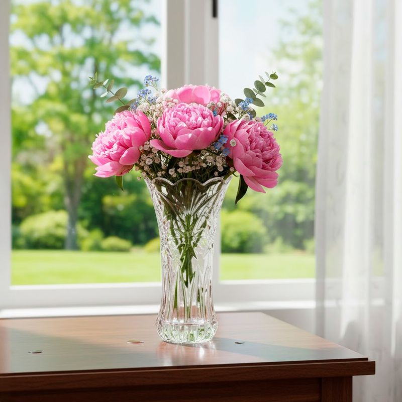 Detalle de Especificaciones:Este florero modelo labrado de vidrio transparente es el complemento perfecto para darle un toque de elegancia y estilo a cualquier espacio de tu hogar u oficina. Medidas Largo: 10 cm, Ancho: 10 cm y Alto: 19.8 Cm.
