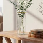 Hermoso florero labrado de vidrio transparente con borde dorado, es una pieza decorativa elegante y sofisticada, perfecta para realzar cualquier espacio en el hogar. Su diseño distintivo combina la belleza del vidrio con detalles artesanales que aportan un toque de lujo.