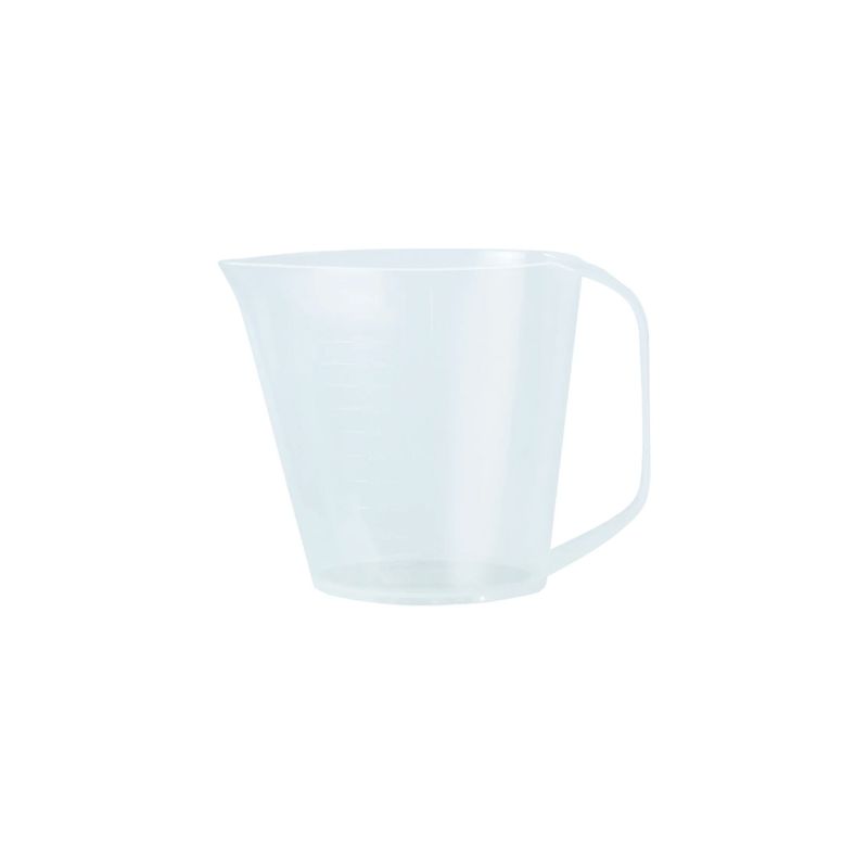 Características:* Jarra de 1 litro con cuatro diferentes escalas de graduación en el cuerpo. * Fabricado con material apto para el contacto con alimentos y uso en microondas, debido a su transparencia es muy útil en la repostería