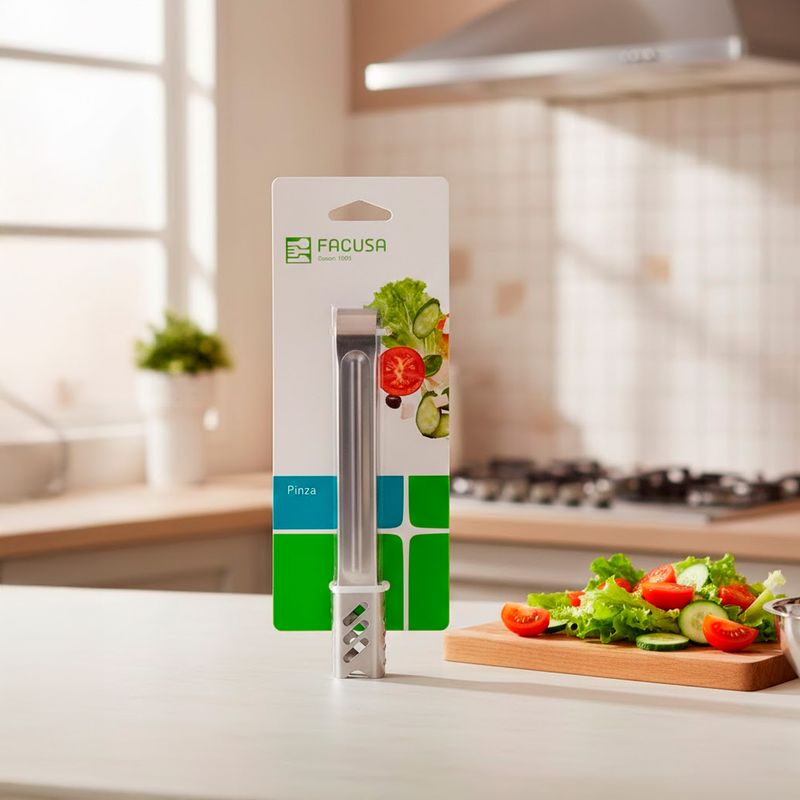 Pinza de Acero Inoxidable para Hielo de 15 cm de la marca Facusa, es el accesorio perfecto para servir cubos de hielo de manera práctica, higiénica y segura. Su tamaño compacto permite un agarre firme y cómodo, ideal para vasos, cocteles o bebidas frías. Presentada en blister, es fácil de almacenar, transportar y exhibir. ¡Cómprala ahora y sirve tus bebidas con estilo y precisión!