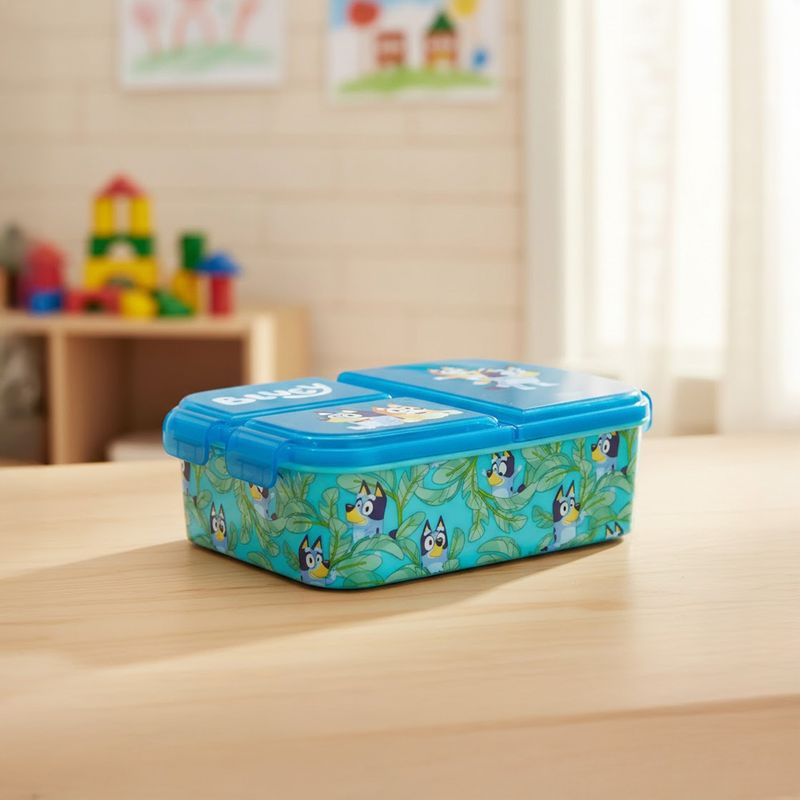 Táper Bluey con tapa de Divisiones 600 ml de la marca Kuyay. Perfecto para organizar tus alimentos de forma práctica y divertida. Con diseño de Bluey y tapa con divisiones, permite separar diferentes porciones en un mismo recipiente, ideal para el colegio, la casa o salidas. ¡Compra ahora!