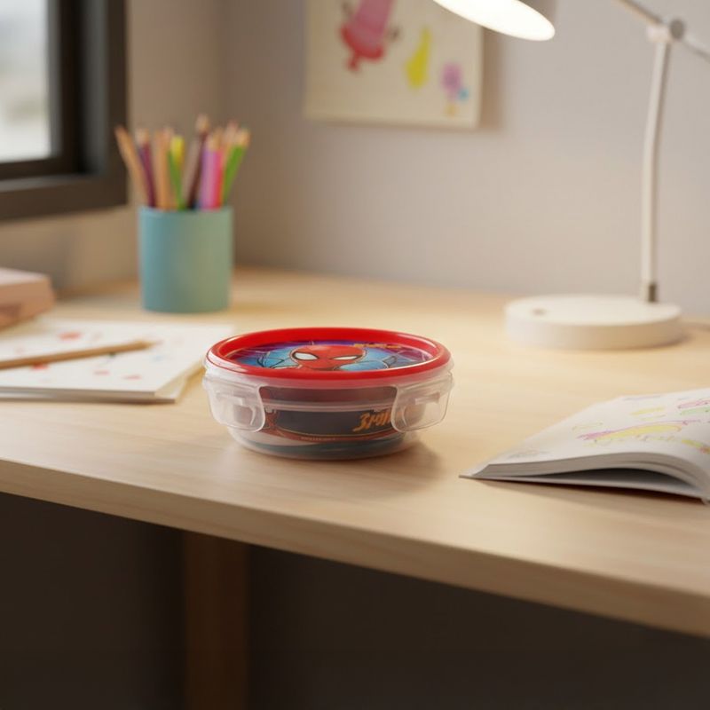 Táper Redondo Baja con Diseño Spiderman 320 ml de la marca Duraplast. Ideal para llevar tus alimentos con estilo. Su diseño temático lo hace llamativo para niñas y fans, mientras que su forma y tamaño lo convierte en una opción para llevarlo a la escuela o salida. Modelo #1. ¡Compra ahora!